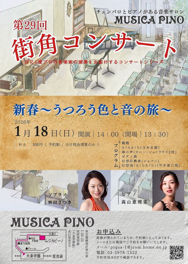 | 日時:2026年1月18日(日)※2時開演 | 予約受付中(残席14) | ||||||||||||||